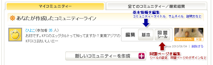 「同盟シール」の編集は、そのコミュニティーの管理人じゃないとできません。