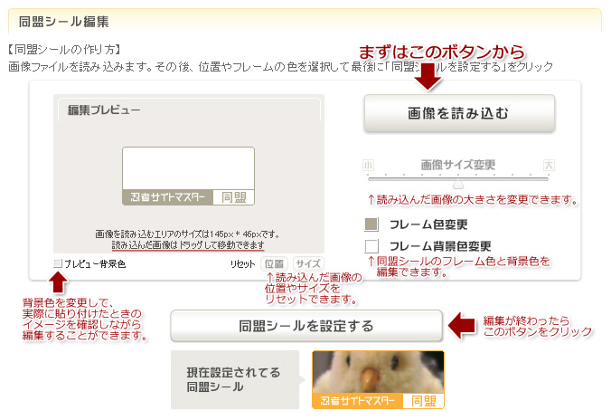 ↑同盟シールの編集画面です。